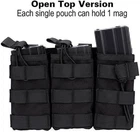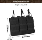Product Description: Features: The magazine is replaced by a flexible elastic rope Easy access to the magazine's fast charge PALS / MOLLE strap to attach it to the standard MOLLE tactical vest, backpack, belt, fall leg platform, gun bags and so on. Specifications: Weight: 0.2kg Size: 28cm*17cm Material: High quality density Nylon Color: Black/Khaki/Army Green/CP Package Included: 1 x Tactical MOLLE Triple Open-Top Magazine Pouch Warm Tips: 1. For photos, please allow a slight color difference due to different PC display different color; 2. Dimensions may vary 1-3cm due to manual measurement.