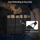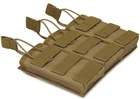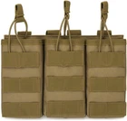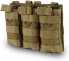 Tactical Molle Triple Magazine Pouch Nylon Open Top 5.56 .223 Rifle Mag Holder Size: 23cm*15cm*3cm Material: High quality density Nylon This Triple Tactical Molle 5.56 Magazine pouch is the ideal way to carry additional magazines and still maintain a low profile. With flat, low profile design, it is perfect for carrying plenty of magazines and still being able to fit in vehicles and maneuver in tight spaces. Since the pouches have additional Molle webbing along the front, users can add additional pouches if needed or use the molled webbing as a tie down point. Fit for any 5.56/.223 Magazine Packing includes: 1 x Triple Magazine Pouch