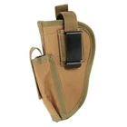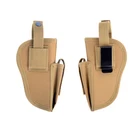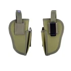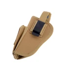 Product Description: Concealed Waist Gun Holder Lightweight Compact Double-Ended Pistol Handgun Pouch Modular Universal Holster Features: 1. Hidden universal holster. 2. It is exquisite, lightweight, durability and portability. 3. It can adjustable, suitable for left or right hand free replacement. 4. It is equipped with safety buckle, fixing belt and a metal clip, which can also be assembled and disassembled as required. 5. The holster can be attached on your waist belt and fasten to your leg. Specifications: 1. Material: Nylon 2. Colors: Black, Khaki, Army Green 3. Size: 20*10.5cm 4. Weight: about 127g Package Included: 1x Universal Concealed Carry Holster Note: 1. All pictures are professionally color-coded, but due to the difference of ambient light and display equipment settings, there may be some deviation between the pictures you see and the objects themselves, please understand. 2. The data is measured manually, and there may be some deviation, but it does not affect the use.
