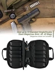 LARGE CAPACITY - This magazine carrier can hold up to 13 standard Single/Double stack magazines, compatible with 9mm, .40, and .45 caliber magazines. The front pocket design provides additional space to store other accessories. MOLLE SYSTEM - The back of the magazine pouch is equipped with the MOLLE system, which can be attached to other MOLLE-compatible equipment such as tactical vests, belts, backpacks, etc. Easy attachment and removal. SAFE & DURABLE - The mag pouch adopts high-quality nylon fabric, strong and durable, not easy to wear. Built-in partition to better protect both sides of the magazine. An elastic pocket is designed at the bottom of the slot, which can securely fix the magazine. PORTABLE DESIGN - This pouch with a portable handle for carrying. The loop area to meet your marking needs. You can use it with a flag hook. The two-way lockable zipper allows you quickly open the magazine pocket in an emergency. LIFETIME-WARRANTY - The product undergoes strict check before delivery, high quality and durability can be ensured. We strive to provide efficient after-sales service to make sure all your problems can be solved satisfactorily.