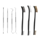 Material: stainless steel + steel wire + plastic Product size: 20 * 9 * 3cm Product weight: 0.18kg Product features: 1: 3 brushes and 6 tools: each cleaning kit includes 3 brushes and 6 tools. The three types of double-ended brushes are brass, steel and nylon. Five cleaning tools are made of stainless steel and one is made of nylon. 2: Brushes of various materials: multi-functional cleaning function, both large and small heads can clean various hard-to-reach spaces. The double-ended pick is ideal for scraping dirt and residue from hard-to-reach places. Soft nylon brushes and brass brushes are essential tools for cleaning all equipment. Steel brushes can be used in special situations. 3: A variety of shapes and different shapes of double-headed tools are ideal for scraping dirt and residues in hard-to-reach places. Packing list: sets