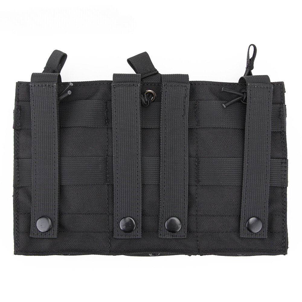 1.This Triple Stacker Tactical MOLLE 5.56 Magazine pouch is the ideal way to carry additional magazines and still maintain a low profile. 2.The pouch is an excellent design for integrating additional magazines into your current load carrying setup. 3.With flat, low profile design, it is perfect for carrying plenty of magazines and still being able to fit in vehicles and maneuver in tight spaces. 4.Since the pouches have additional MOLLE/PALS webbing along the front, users can add additional pouches if needed or use the MOLLE/PALS webbing as a tie down point. 5.The open-top design with bungee retention is secure and allows for very fast reloads. 6.Fit virtually any 5.56/.223 Magazine 7.Adjustable bungee retention straps make access to your magazines easy while securely holding them in place. 8.PALS webbing on front to stack additional pouches or accessories. 9.PALS Straps to attach it to tactical vest, backpack, or compatible rifle cases. Size: 28cm*17cm/11.02*6.69inch Material: High quality density Nylon Color: Black, Khaki, Army Green Fits: virtually any 5.56/.223 Magazine Packing includes : 1x Tactical Triple Molle Magazine Pouch