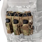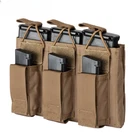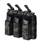 Material: High quality 500D Nylon Fabric Color: Multicam, Black, Coyote Brown, Multicam Black Size:22.5cm x 14cm Weight:175g Package:Mag Pouch x1(NOT include mag sample and vest) Modular Six magazine pouches, Three fits for 5.56 .223 Mag and Three fits for Pistol mag. Magazines secured by bungee retention with a loop. Pistol mag pouch in the front with hook & loop fastener flap. Top opening style for quick draw. Modular webbing on back and compatible with all MOLLE and PALS system. It also can be attach on the patrol belt. NOTE: The magazine model and tactical vest in picture are NOT included. Just for picture purpose.