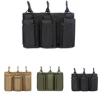 Product Description Product description: 1.Construted by waterproof 1000D Polyester .The product has two layers and Three magazines 2.Hook & loop cover is quick access for pull magazine. 3.Molle design, can be attached to molle compatible webbing on your tactical vest, belt, drop leg platform. Specifications: Material: 1000DPolyester Weight: 210g Color: Black-1 , TAN-2,Green-3 Size:23CM X 14CMX 3CM Package includes: 1x Magazine Pouch