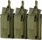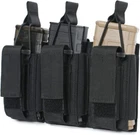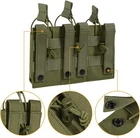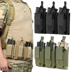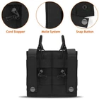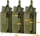 Product Description Feature: 1. MATERIAL: This molle mag pouch made of high quality military 1000D Cordura Nylon material, tear-resistant, wear-resistant, special design on the outside of the magic stickers that can stick badge to your favorite. 2. THE BACK SIDE: there are 4 thick nylon belt with snap button on the back, and the straps can be adjusted as needed to prevent slipping. This product can be perfectly matched with this series of products such as tactical vests and tactical package. 3. THE SIDE: high-elastic elastic band can insert different types of mags and tools. secured in place by elastic band, easy to adjust elastic band to keep article reaches the most stable state. 4. DOUBLE KANGAROO DESIGN: The mag pouch features 2/3 compartments, the front small pouch can be loaded with pistol magazines, the back large one can be loaded with rifle magazines. It can accommodate both PISTOL and RIFLE magazines to meet all your needs. Enough mags can be carried while hunting, convenient for you to stay in the wild for a long time. 5. EASY TO ACCESS: Quick access to another magazine with only one single hand. The OPEN-TOP design and elastic bungee cord make the magazines easier to access, just pull the tab. The adjustable flap with Velcro prevents your pistol magazines from falling out while running or bending down. 6. WIDE RANGE OF APPLICABILITY: The mag pouch is fully compatible with all standard MOLLE gear and easily attaches to your tactical vests, rifle case, bags, belts, and other MOLLE systems. Specification: 1. Item: Tactical Molle Magazine Pouch 2. Material: Durable Waterproof 1000D Nylon 3. Color: Black/Khaki/Army Green 4. Size: 9.4*1.2*5.31in Package Includes: 1* Mag Pouch (Magazines are not Included)