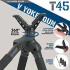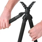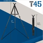 Our eBay Store About Us Contact Us Add to Favorite Sellers Tactical45 Hunting Bipod Shooting Stick - Combo Monopod Tripod Rifle Rest 52.99 At Tactical45, we know it is important to get to your secret spot first as well as be the first one set up. With our Convertible Hunting Bipod Shooting Stick, you can pack in and be ready for that trophy buck at the crack of legal shoot time. Constructed from heavy duty aluminum, this monopod-bipod-tripod is lightweight enough to keep your pack manageable. The lever lock legs easily adjust up to 47in (119.38cm) and adapt to most any terrain. Rubber capped feet protect wood, concrete, and other finished surfaces. Screw the feet up to expose the metal spikes for gripping rough ground. Once set up, the gun tripod rest features a padded V yoke to place the barrel of your rifle into for steady shooting. The 360-degree head rotation allows smooth movements to better conceal your position. Warning: This product contains chemicals known to the state of California to cause cancer and birth defects or other reproductive harm. Product Details [Lightweight Design]: The Tactical45 Shooting Tripod is constructed from durable, lightweight aluminum ready to pack and never slow you down on your way to the honey hole [Flexible Shooting]: Easily adjust from a monopod, bipod, or freestanding tripod set up by separating the legs from the strap; Each leg moves independently to customize your set up [Locking Legs]: Set rifle shooting stick leg heights from 31.5-47in (80-119.38cm) by opening each lever lock and sliding out telescopic inner pole before clamping; Do not extend past arrows for stability [Adjustable Feet]: Rubber capped feet on your tripod rifle mount provide protection to flat man-made surfaces and screw up to reveal metal spikes to grip rough terrain [360 Rotation]: The full circle rotating V yoke gun tripod rest features a soft rubber lining to prevent scratches to your rifle barrel; Additional attachments for optics not included