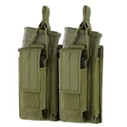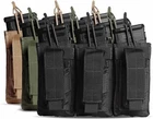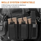 Product Description Feature: 1. MATERIAL: This molle mag pouch made of high quality military 1000D Cordura Nylon material, tear-resistant, wear-resistant, special design on the outside of the magic stickers that can stick badge to your favorite. 2. THE BACK SIDE: there are 4 thick nylon belt with snap button on the back, and the straps can be adjusted as needed to prevent slipping. This product can be perfectly matched with this series of products such as tactical vests and tactical package. 3. THE SIDE: high-elastic elastic band can insert different types of mags and tools. secured in place by elastic band, easy to adjust elastic band to keep article reaches the most stable state. 4. DOUBLE KANGAROO DESIGN: The mag pouch features 2/3 compartments, the front small pouch can be loaded with pistol magazines, the back large one can be loaded with rifle magazines. It can accommodate both PISTOL and RIFLE magazines to meet all your needs. Enough mags can be carried while hunting, convenient for you to stay in the wild for a long time. 5. EASY TO ACCESS: Quick access to another magazine with only one single hand. The OPEN-TOP design and elastic bungee cord make the magazines easier to access, just pull the tab. The adjustable flap with Velcro prevents your pistol magazines from falling out while running or bending down. 6. WIDE RANGE OF APPLICABILITY: The mag pouch is fully compatible with all standard MOLLE gear and easily attaches to your tactical vests, rifle case, bags, belts, and other MOLLE systems. Specification: 1. Item: Tactical Molle Magazine Pouch 2. Material: Durable Waterproof 1000D Nylon 3. Color: Black/Khaki/Army Green 4. Double Mag Pocuh: 6.2*1.2*5.3in 5. Triple Mag Pocuh: 9.4*1.2*5.31in Package Includes: 1* Mag Pouch (Magazines are not Included)