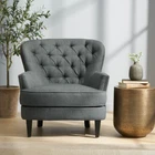 Specifications Place of Origin #originPlace# Main Color Grey Main Material Fabric Dangerous Goods #dangerFlag# Dimensions & Weights Assembled Length (in.) 33.50 Assembled Width (in.) 35.00 Assembled Height (in.) 34.50 Weight (lbs) 35.27 Product Features Make a chic addition to your home in the form of this chic and beautiful chair. CONTEMPORARY DESIGN: Featuring smooth upholstery and tapered birch wood legs, our club chair offers the look, feel, and design of a truly contemporary piece. With a minimalistic yet refined structure, this chair brings out a simplistic style that emphasizes comfort and functionality. BUTTON-TUFTED DIAMOND STITCH: The button-tufted stitching in the backrest offers an extra touch of sophistication that enhances its contemporary design. The diamond stitch pattern adds a bit of texture without sacrificing any comfort. NAILHEAD ACCENTS: This chair spares no expense when it comes to its finishing details. Expertly styled, this piece has tasteful nailhead accents bordering the bottom edge. Each nailhead is individually applied for a beautiful, handmade touch. UPHOLSTERED: Our club chair is generously upholstered, giving any room a refined appearance. This provides a smooth, immaculate texture for this piece as well as plush seating for comfort. DIMENSIONS: Choose an accessory that is the perfect size for you and your furniture. The club chair is 33.50' W x 35.00' D x 34.50' H. You will love how much your space can transform with the simple addition of this charming chair. Description