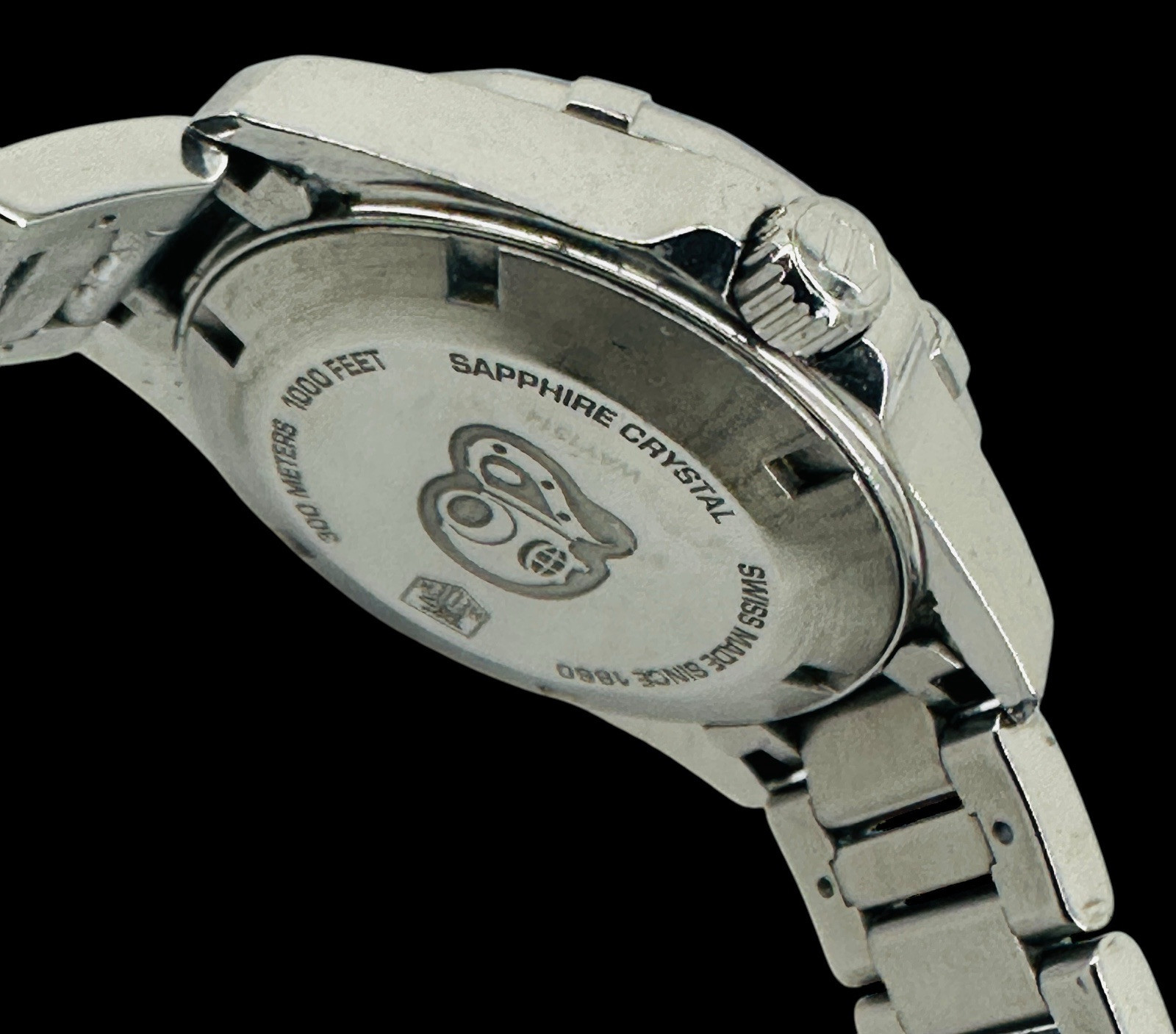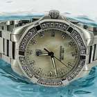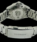 The Tag Heuer Aquaracer 32mm WAY1314 watch for women features a stainless steel strap with diamond markers on a mother of pearl dial. It is a quartz movement wristwatch with a silver case and bezel set with diamonds. This casual style timepiece was manufactured in the 2010-2019 period in Switzerland. It comes with a 24-hour dial and has a case size of 32mm. Original box/packaging and papers are not included.