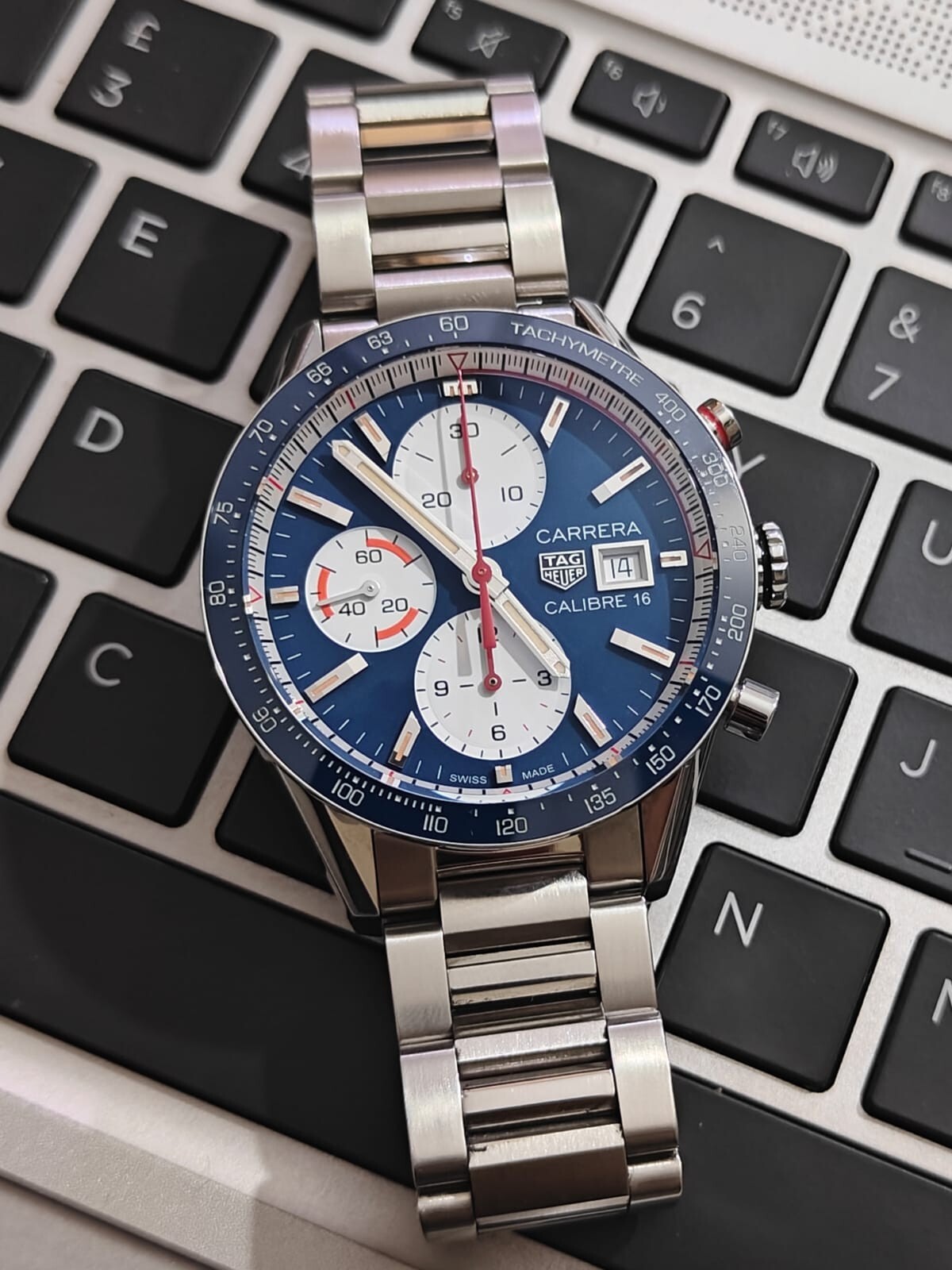 Tag Heuer Carrera Chronograph Automatic Blue Dial Men's Watch CV201AR.BA0715 Approximate Measurements: Case Size With Crown: 44.3mm Case Size Without Crown: 41mm Lug to Lug Width: 50mm Movement: Automatic Item Condition: The Watch is in Fully Working Condition. It Comes With Genuine Bracelet . there are some links of bracelet are short but Max Wrist Size is 7.6-8 Inches . It has Less signs of usage. Like Brand New Watch. You can see the photos for more details. Photos are also a part of description. If you have any query about the watch you can Ask. Shipping Worldwide: Fed Ex UPS Charges:$25 Takes only 12 to 23 Days. for remote area buyer has to pay $30 additional . Respected Buyers Please Read Before Buying an item: Please make sure you have seen all the photos and read the description. I have attempted my best to describe the actual condition of watch as much always here to give the best possible reply to our respected buyers. > Buyer Is Responsible for any import taxes. > We do not test watches for waterproof. This item is use. Please carefully inspect our photographs. We have tried to describe this item as accurately as possible. However. It may contain small imperfections that are difficult to show in photog Please Fell Free To Give Offer. We Accept Offer. But please don't devalue I balling. Grateful to You Visited My Watch house. Buy With Confidence RETURN POLICY: Returns are only possible if the item is not as described in the description, and returns are not possible under any circumstances.
