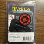 The Tagua Four in One Holster is designed for the Diamondback DB380 pistol, made of black leather for a right-handed shooter. This versatile holster can be carried in multiple positions such as small of the back, Cross Draw, on the belt (OWB), or inside the waistband (IWB). It features a clip and belt attachment for secure carrying, as well as being lightweight, weather-resistant, and multifunctional. Made in Paraguay, this holster is suitable for shooting activities.