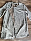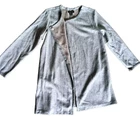 Tahari Asymmetric Jacket Dress Open Front With Crochet Accent Button And Snap Closure Top Button Size Large Gray Wool Blend Two Tone Gray With Taupe Long Sleeve 23" Pit to Pit 34" Shoulder to Hem Excellent Pre-owned Condition