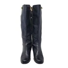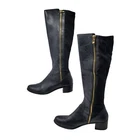 These Tahari Kyle knee-high boots, crafted from premium black leather, offer a sleek and stylish design that enhances any wardrobe. Their gold zipper closure provides ease of wear and a touch of elegance. A reliable choice for those seeking comfort and sophistication in their footwear collection. • Knee-high design • Gold zipper closure • Made in China • Leather upper for durability • Comfortable fit Gently pre loved minor wear see photos Size 9 Measurements Shaft 15.5" Heel 2" Width 7.5 Thank you for supporting my small business! All measurements are approximate and should be measured against an item that you already own to determine how the item will fit on you. I want you to be happy with your item so please reach out with any questions that you have prior to purchase. Seller on multiple platforms and next day shipper. Bundle and save. Tall Knee-high City Going Out Equestrian