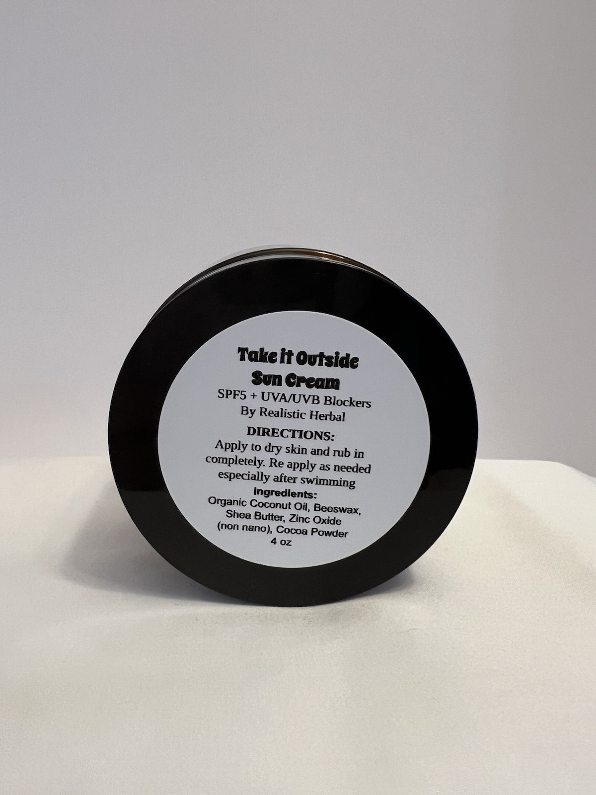 The Take It Outside Sun Cream SPF 5 is a versatile organic suncare product by realistic herbal. With a star rating of 1 for UVA protection and an SPF of 5, this cream is designed for all skin types and offers hydrating and moisturizing properties. Made with ingredients like shea butter, zinc oxide, and organic herbs, this sunscreen provides reliable protection for outdoor activities while smelling like a refreshing herbal scent. Whether you're looking to protect your chest, neck, arms, full body, or legs, this sun cream is a great choice for those seeking natural and organic skincare options.