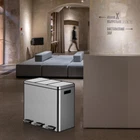 Feature: The trash can, crafted from high-quality stainless steel, offers a modern and sophisticated appearance while being practical for daily use. Featuring separate compartments, users can conveniently sort different types of waste, facilitating efficient recycling and disposal. Additionally, the soft-close lid feature of the garbage can ensures there is no loud slamming noise when the lid is closed adding a touch of convenience and consideration for a peaceful environment. The foot pedal allows for hands-free lid opening, promoting a hygienic waste disposal process. Additionally, the recycling bin's removable bucket with carrying handles enables easy removal for emptying or replacing garbage bags. These combined features provide a functional, long-lived, and hygienic waste disposal and recycling solution for homes or offices, offering convenience and organization in waste management practices. Specification: Material: Stainless steel and plastic Capacity: 16 gallon(60L) / 3×5.2 gallon(20L) Packing list: 1 trash can with inner wastebasket (including instruction) Note: Before making a purchase, consider factors like height, width, depth and capacity to ensure the size of the item you are considering fits your need. Ample Capacity: Dimension: With a total capacity of 15.9 gallon (60 L), this trash can provides ample space for both trash and recycling including 3×5.3 gallon (20 L) interior plastic liner bins, allowing for efficient waste storage and disposal. Solid and Long-lived: Crafted from stainless steel, this rubbish bin effectively solves the problem of rust, making the garbage can long-lived. By using slow down technology can reduce trash can damage, ensuring that there is no loud slamming noise when closing. Odor-Sealing Design: Designed with an odor-sealing ensuring the lid securely seals around the rim, preventing the odors escape from the trash can, effectively minimizing odor leakage and maintains a more hygienic environment. Hands-Free Opening: The kitchen trash can features a solid foot pedal allowing you to open the lid easily without the need to bend down, also reducing the need for contact with the lid, providing you with a more hygienic way to dispose of rubbish. Removable Bucket Liner: The recycling bin features a removable bucket liner with a carrying handle on each inner bucket, allowing for easy removal of the inner bucket by simply pulling it out, making it convenient for emptying or replacing the garbage bag.