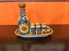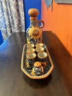 Talavera Tequila Set that is 100% handmade and a product of Mexico. The tequila decanter is 1.5 pt/600 ml and comes with six shot glasses, a salt shaker and all sits on a beautiful tray.