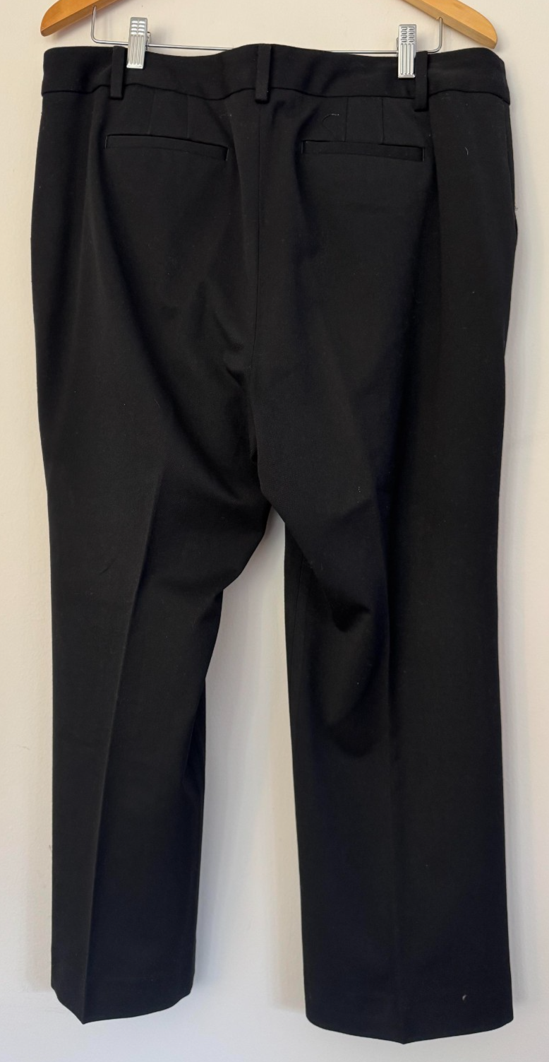 Talbots Barely Boot pants in a classic solid black color. Designed with a flattering barely bootcut leg that balances professional polish and everyday comfort. Features a tailored waistband with belt loops, front pockets, and back welt pockets. Perfect for office wear, business casual outfits, or versatile work-to-weekend styling. Measurements (Flat lay, approximate) • Waist: 17 in • Rise: 10.5 in (approx) • Inseam: 26.5 in • Leg opening: 8 in • Total length: 37 in Item Specifics Style: Dress Pants / Slacks Department: Women Type: Pants Size Type: Petites Size: 16P Brand: Talbots Color: Black Fit: Regular Leg Style: Barely Boot Rise: Mid Rise Closure: Zip Fly with Button Material: Polyester Blend (stretch) Fabric Type: Woven Pattern: Solid Occasion: Business, Workwear, Casual Features: Stretch, Pockets, Tailored Fit Theme: Classic, Career, Office Vintage: No Keywords talbots barely boot, talbots pants, womens work pants, black dress pants, career slacks, office wear, business casual pants, petite pants, bootcut pants women, tailored slacks, professional workwear, classic pants