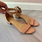 Talbots Beige Leather Sandals Ankle Strap Block Heel Open Toe Shoes 8 1/2 Classic style, in a great beige color. Size 8.5. Minor wear, no major flaws, see photos for details.