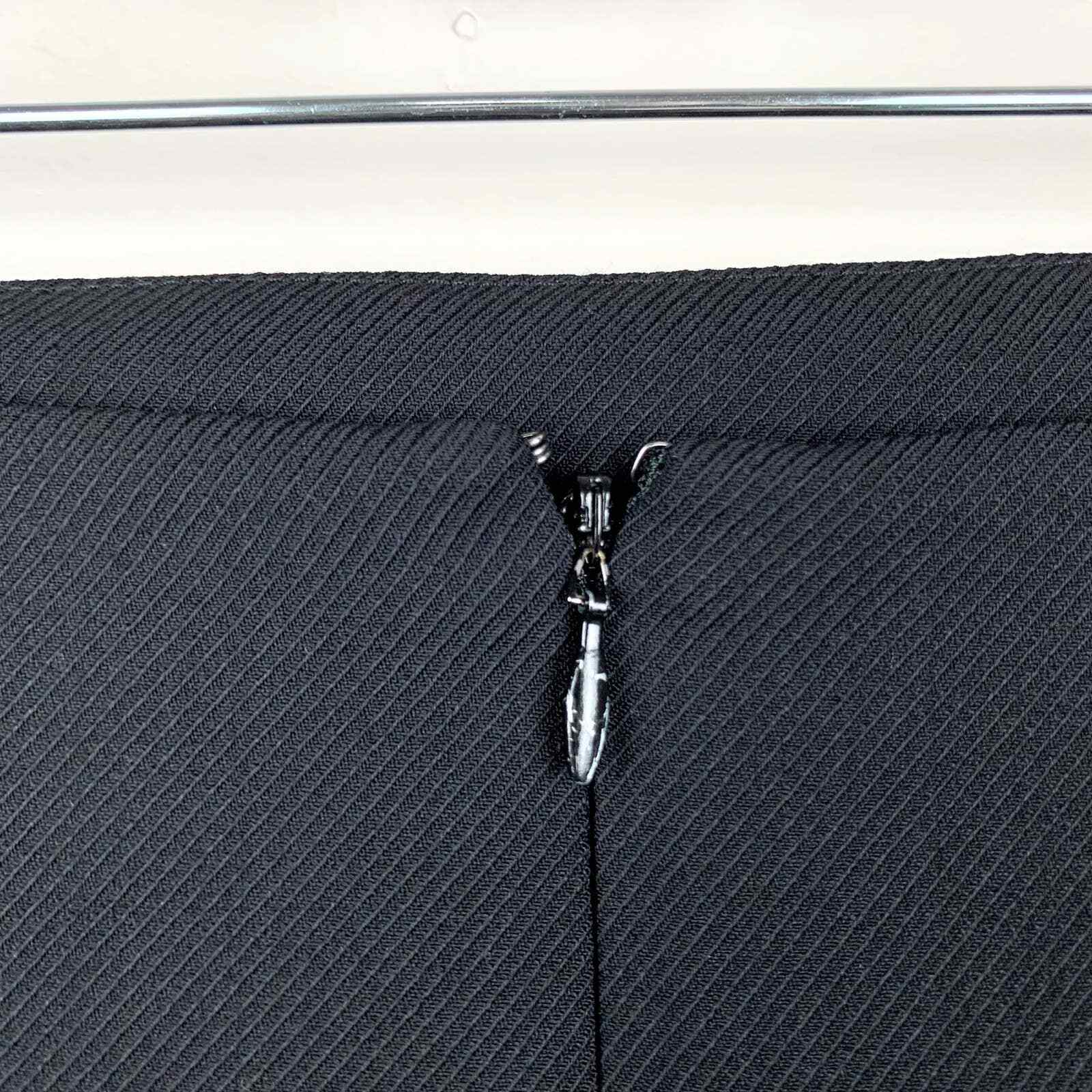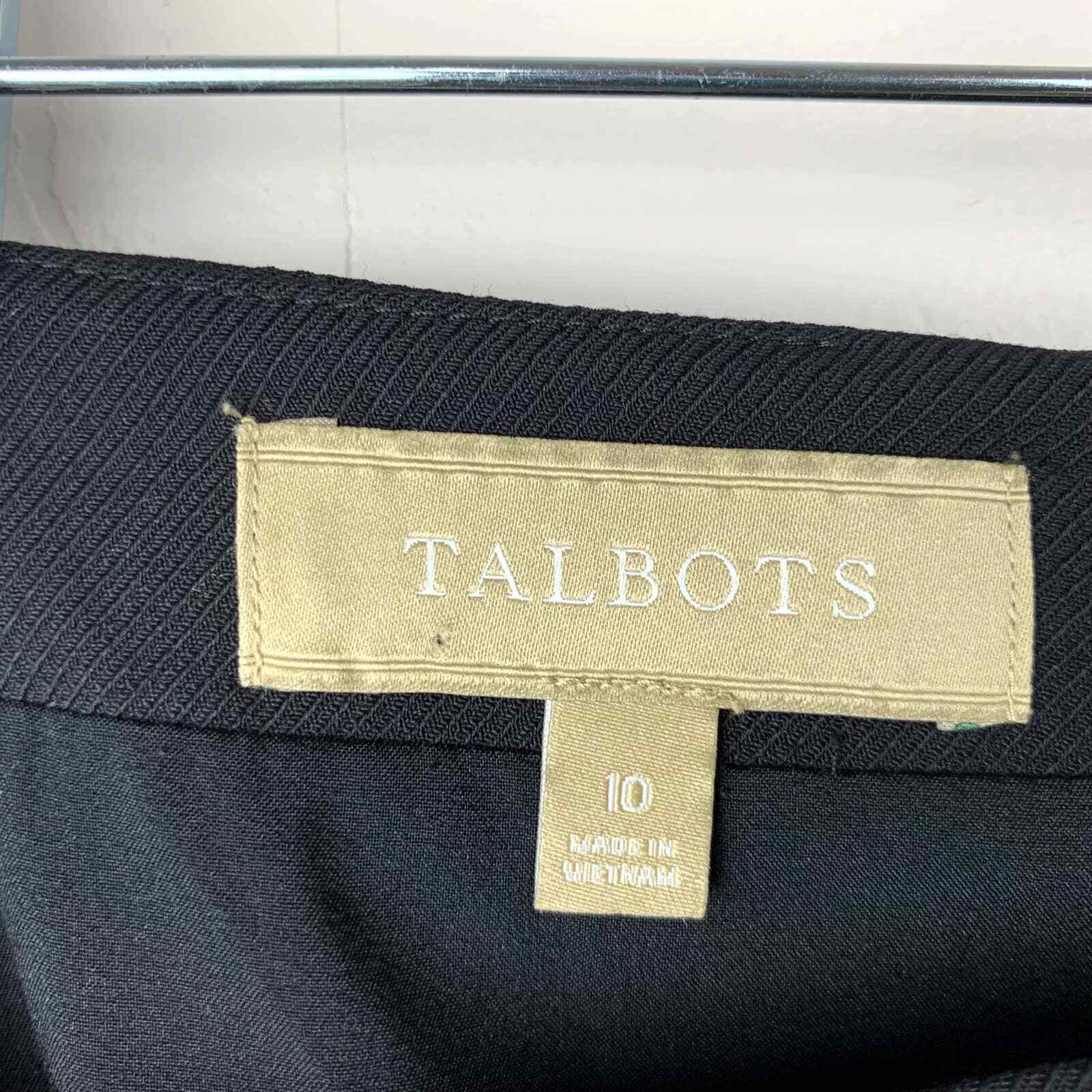 Talbots straight pencil skirt in women’s size 10. Black 95% wool 5% spandex. 100% polyester lining. Dry clean. Lined. Zipper at the back. The back hem is slightly longer and there is pleating at the hem. Fabric woven in Italy. There are scratches on the zipper pull and some faint writing on the tag. Please see pictures. Waist: 16.5” across Length: 22.25” front