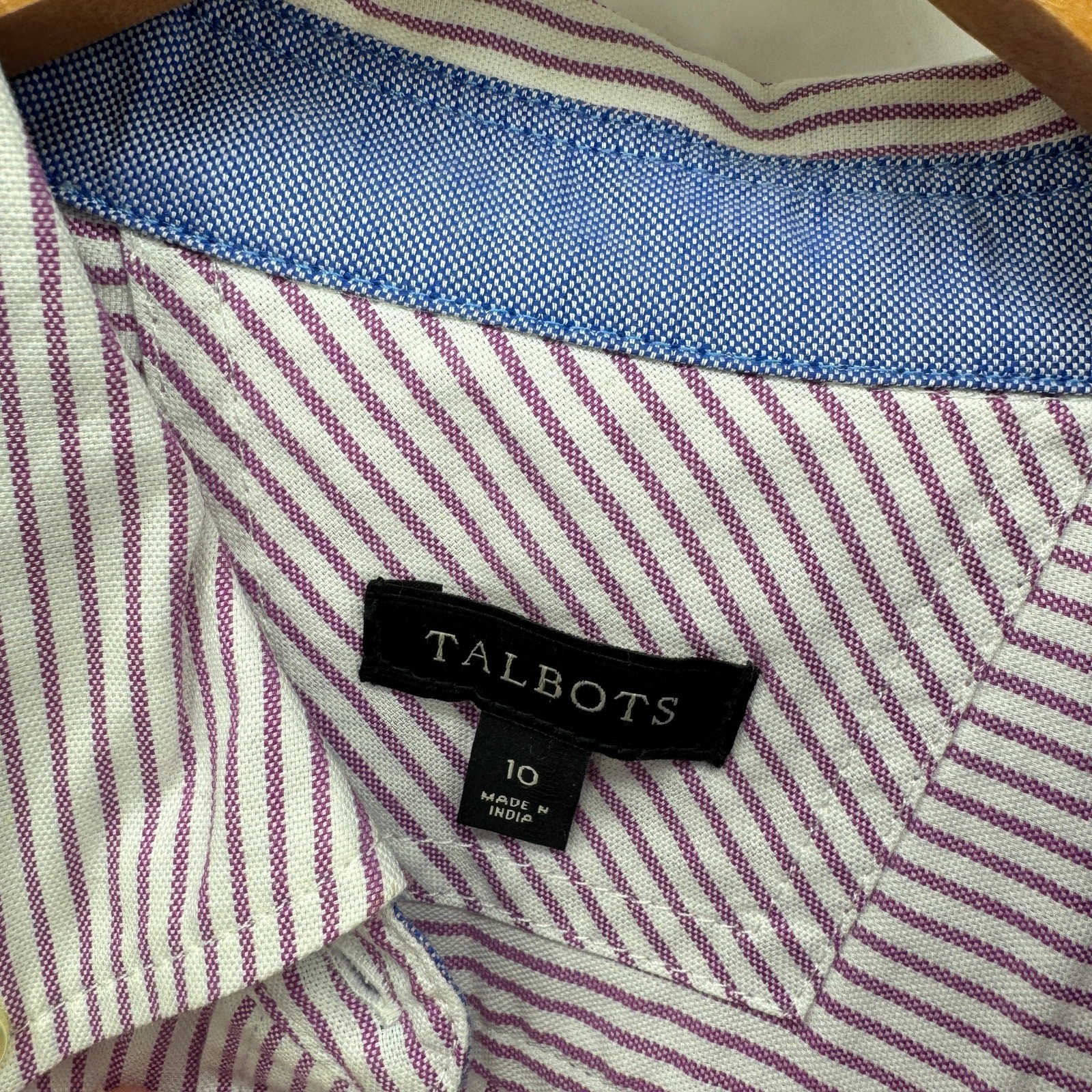 Talbots Blouse Womens 10 White Purple Stripe Button Up Long Sleeve Cotton Shirt Very good condition, see all pictures for views. •Pit to pit: 19" •Shoulder to hem: 26" Thank you for your purchase, we appreciate you!