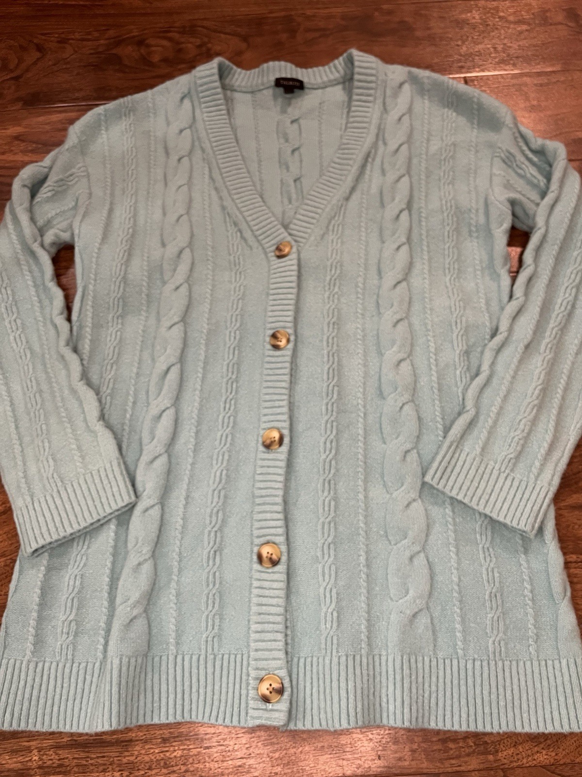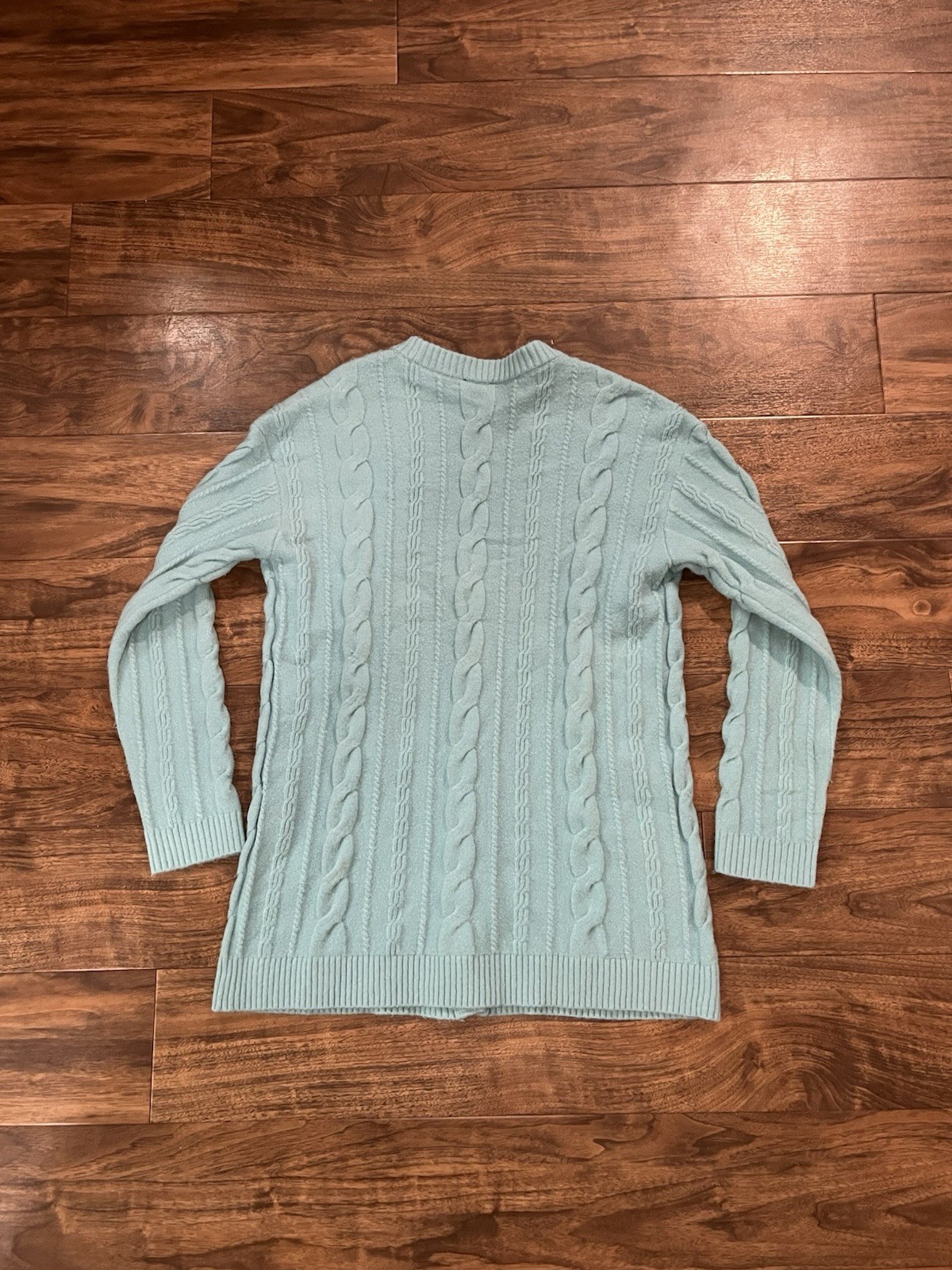 Jones New York Signature Blue Herringbone Knit Open Front Cardigan Size Large