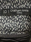 Elevate your wardrobe with these Talbots Chatham Ankle Pants in a stylish black and white geometric print. The pants are made from a comfortable and stretchy cotton blend twill fabric, ensuring a perfect fit for regular size 10. The straight leg style and 28-inch inseam make them perfect for both casual and business occasions. The pants feature a zipper closure and accents, adding a touch of sophistication to the preppy-themed design. The Talbots brand is known for its high-quality clothing, and these pants are no exception. Add them to your collection and enjoy the comfort and style they offer. Preowned Good Condition