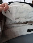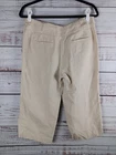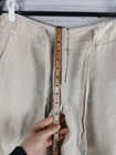 These Talbots crop pants for women in size 6 Petite are made from pure Irish linen in a beige color. The straight leg design features a mid-rise waist with a flat front and a 17-inch inseam, making them ideal for summer, fall, and spring occasions such as travel or casual wear. The pants have a zip and button closure with a drawstring for added comfort, and the subtle button accents add a touch of style to the overall beach-inspired, bohemian theme. Please note that there is a tiny stain on the back and is missing a button Please refer to pictures for condition thank you