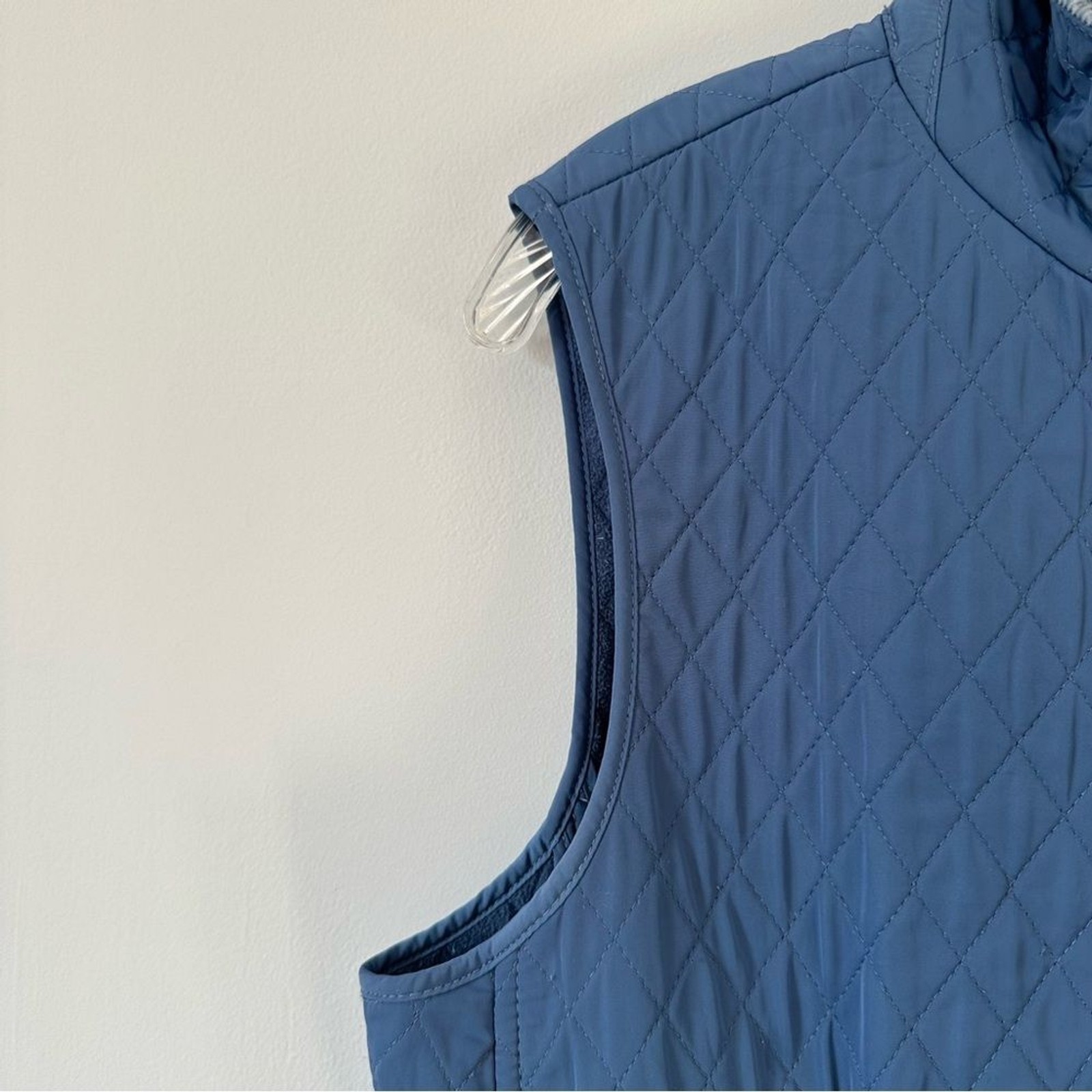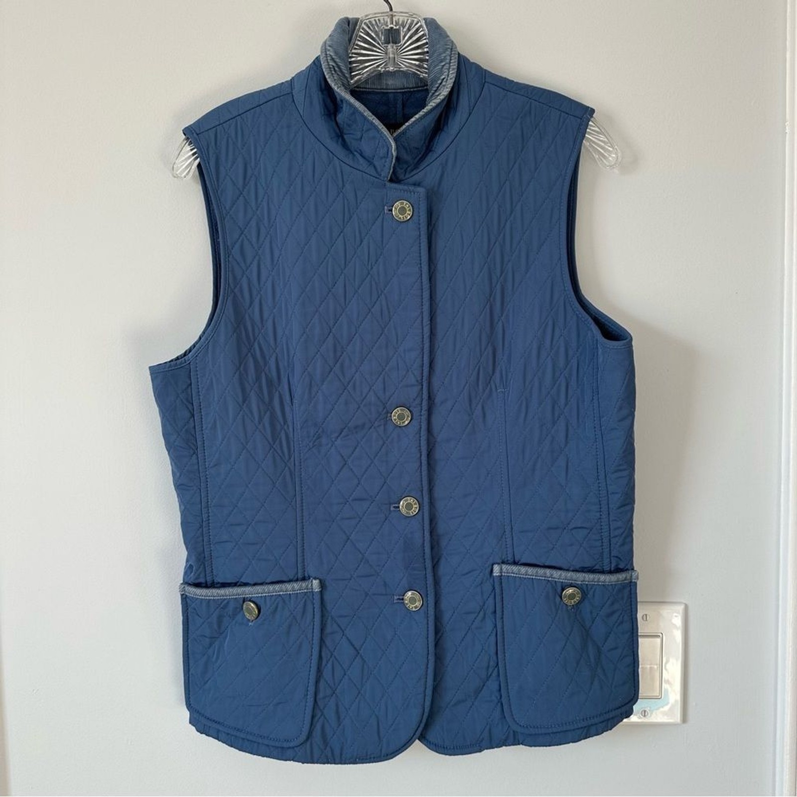 Talbots Diamond Blue Quilted button up vest. Size small. Excellent condition! Figure-flattering quilted vest. Just-right warmth. With cinching at the back waist. Easy to wear, easy to pair. Gorgeous blue color! Stock photos to show how it fits. Color of actual vest is the blue color