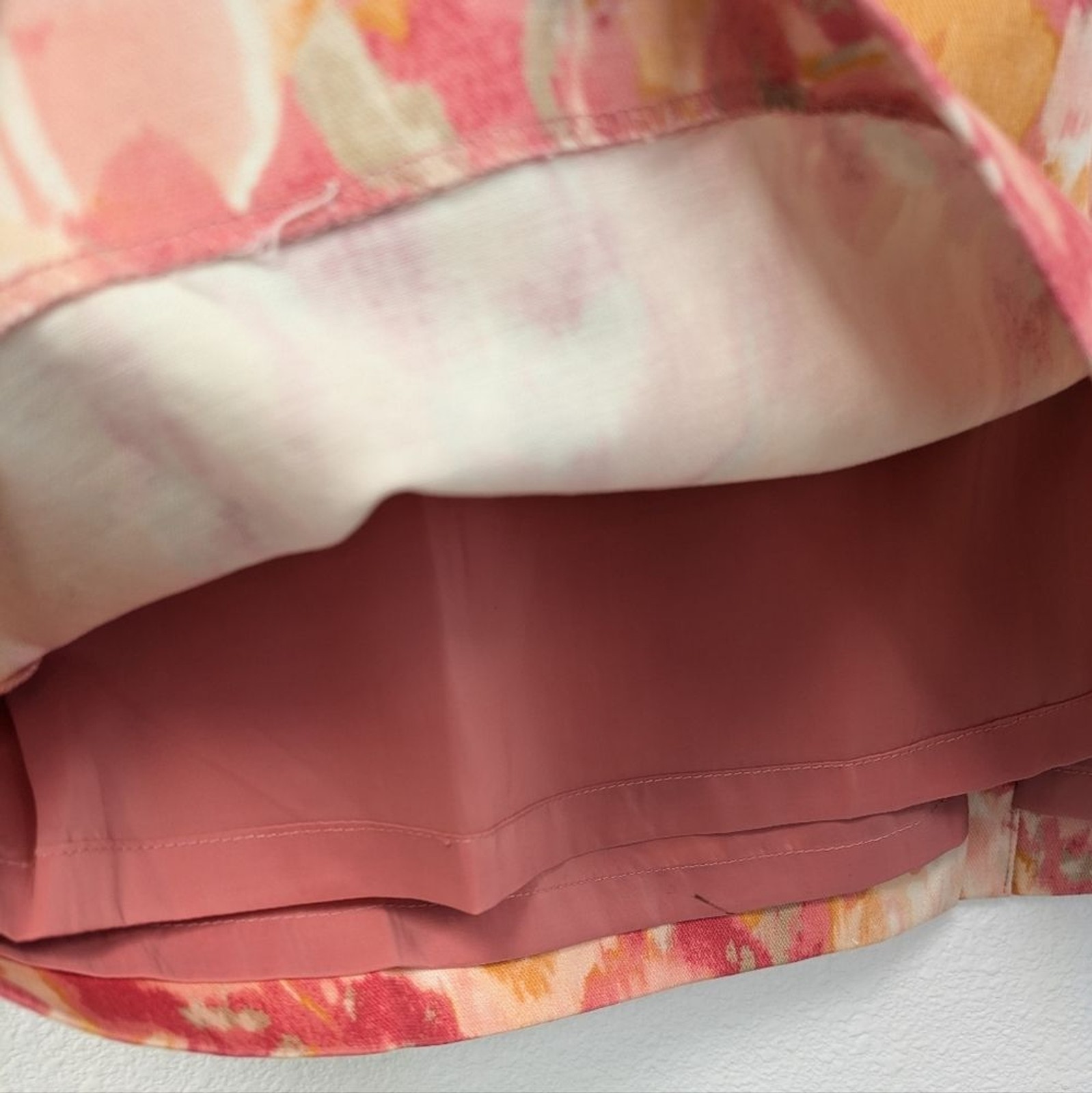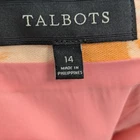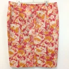 Talbots Pink/Orange Floral Watercolor Cotton Pencil Skirt -In excellent condition, one very small mark on the inside of the lining that can't be seen while being worn (picture included) -Gorgeous colorful floral skirt that is just like the colors of rainbow sherbet -This pencil skirt is perfect for a teacher or a pop of color for the office -98% Cotton 2% for a little bit of stretch -Women's size 14 Approximate measurements taken with garment laying flat Waist: 36" Length: 24"