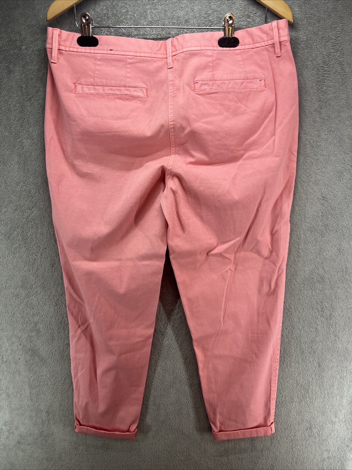 Get ready to elevate your workwear game with these Talbots Girlfriend Chino Pants in a beautiful pink color. These pants are perfect for any woman who wants to look classic and modern at the same time. With a straight leg style and cuffed hem, these pants are made of a comfortable blend of spandex and cotton, and feature a flat front and zip closure for a smooth fit. Ideal for any business occasion, these pants have pockets and stretch material for added convenience. These pants are available in size 10 with a waist size of 34 and an inseam of 26. Made in Jordan, these pants are a great addition to any wardrobe for the summer and spring seasons.