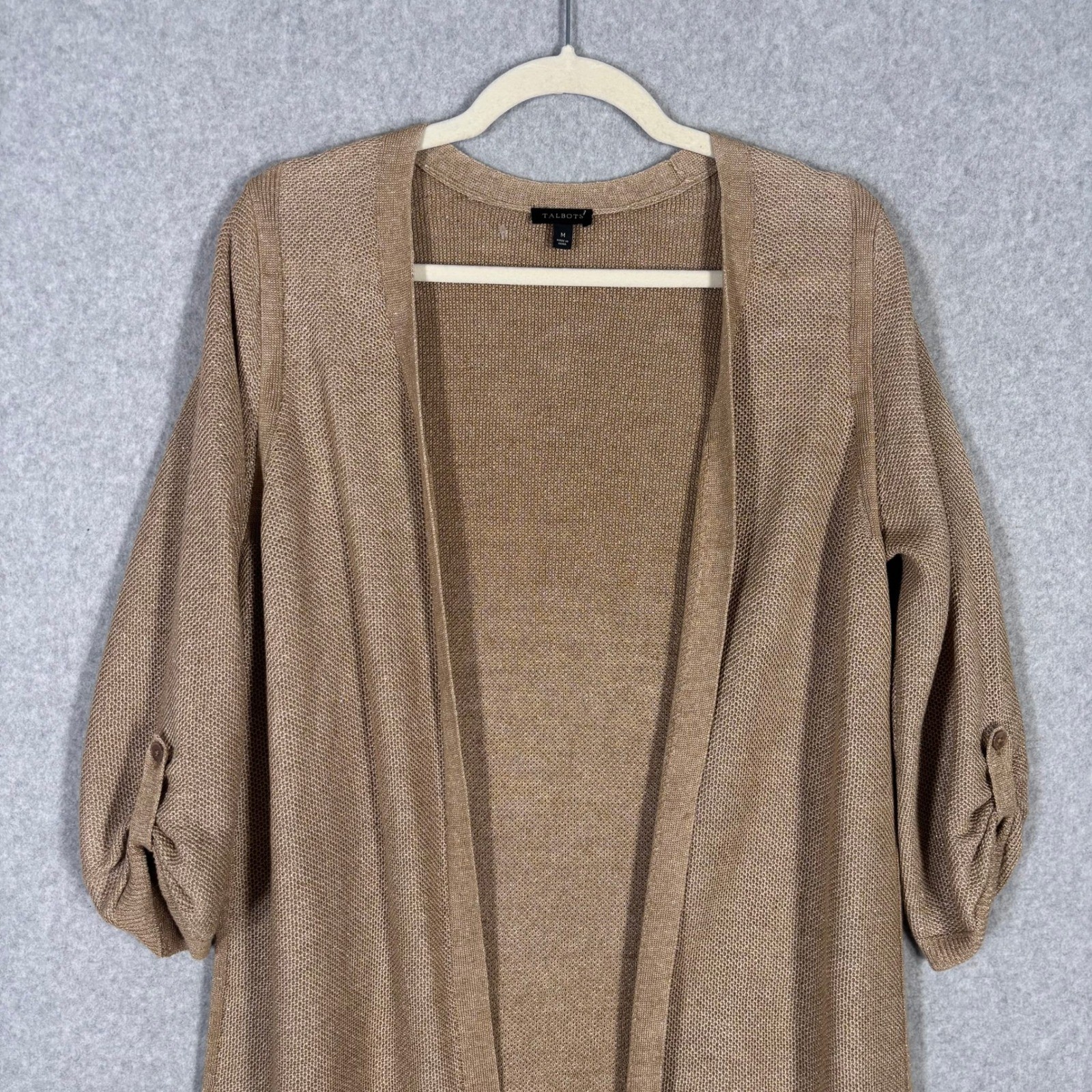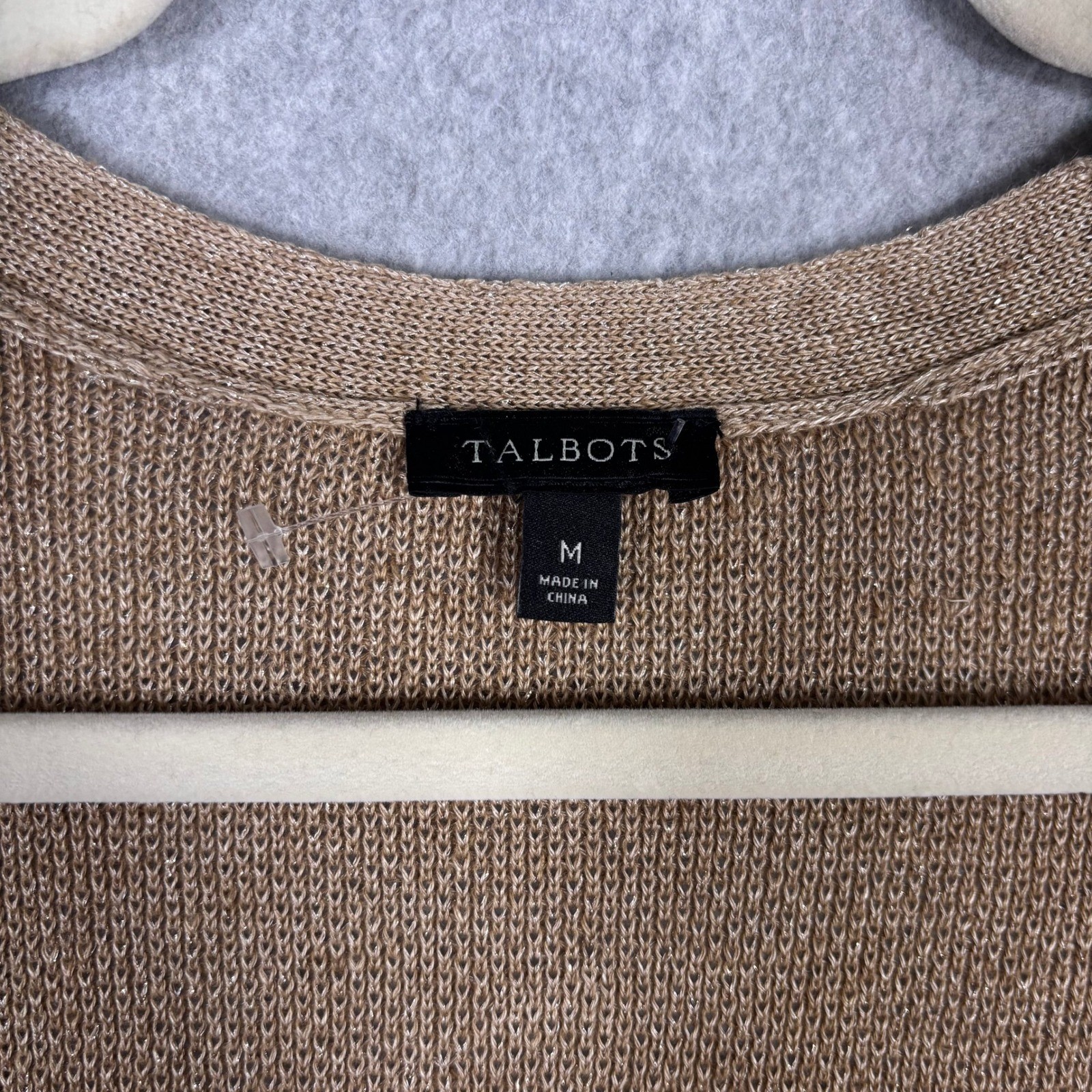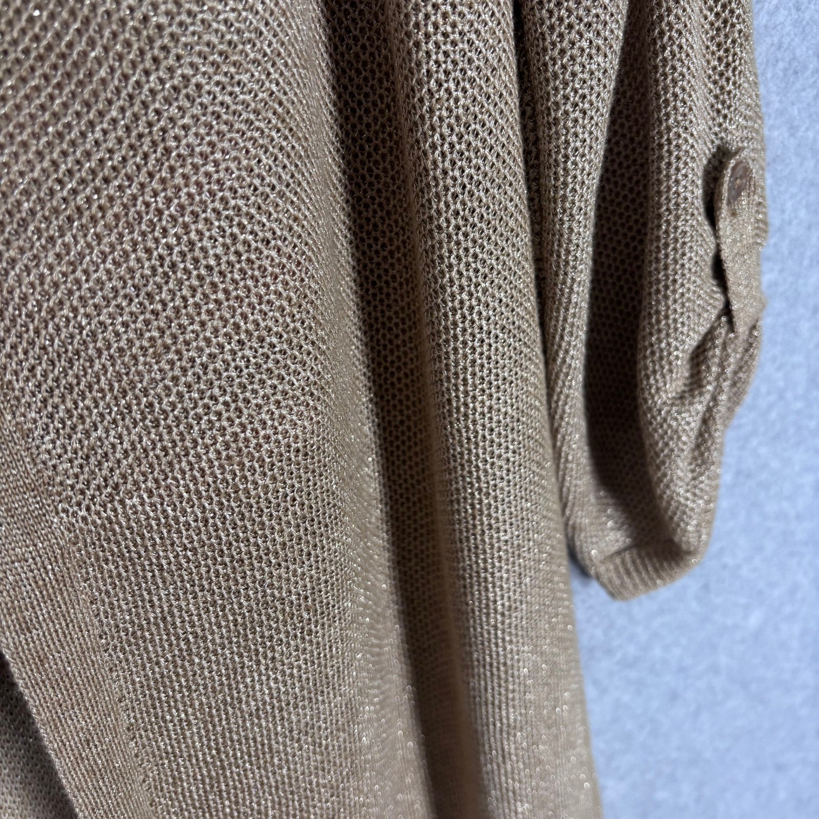 Talbots Gold Metallic Linen Cardigan Sweater Medium Sheer Duster Shimmer Party Wedding Cocktail Formal Evening Bridesmaid Holiday Christmas Event Open Roll Tab 3/4 Sleeve Feminine Romantic Mediterranean Slit Lightweight Thin Stretch EXCELLENT Pre-owned condition: minimal to no signs of wear, no stains or holes **Please see all pictures for full item condition and details** - Ships Same/Next Day, Professional Seller, Offers Welcome, Like or watch for price drops - Item in photos is exact item you will receive - I list new items daily, be sure to browse my store/closet for more items - Bundle pricing and combined shipping available for additional savings - Feel free to send a message