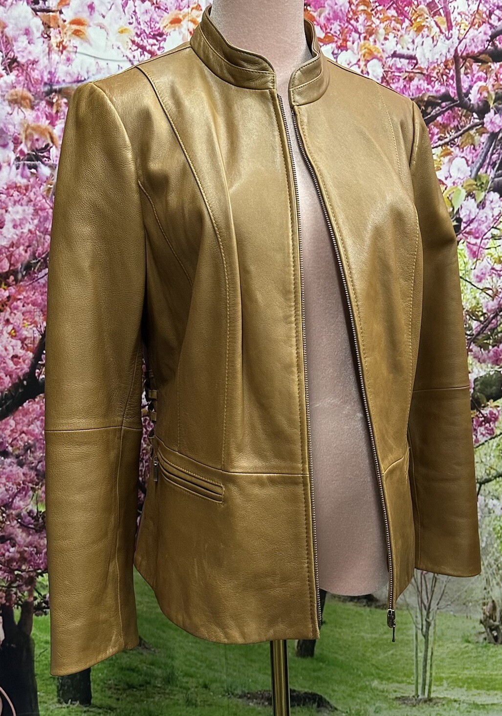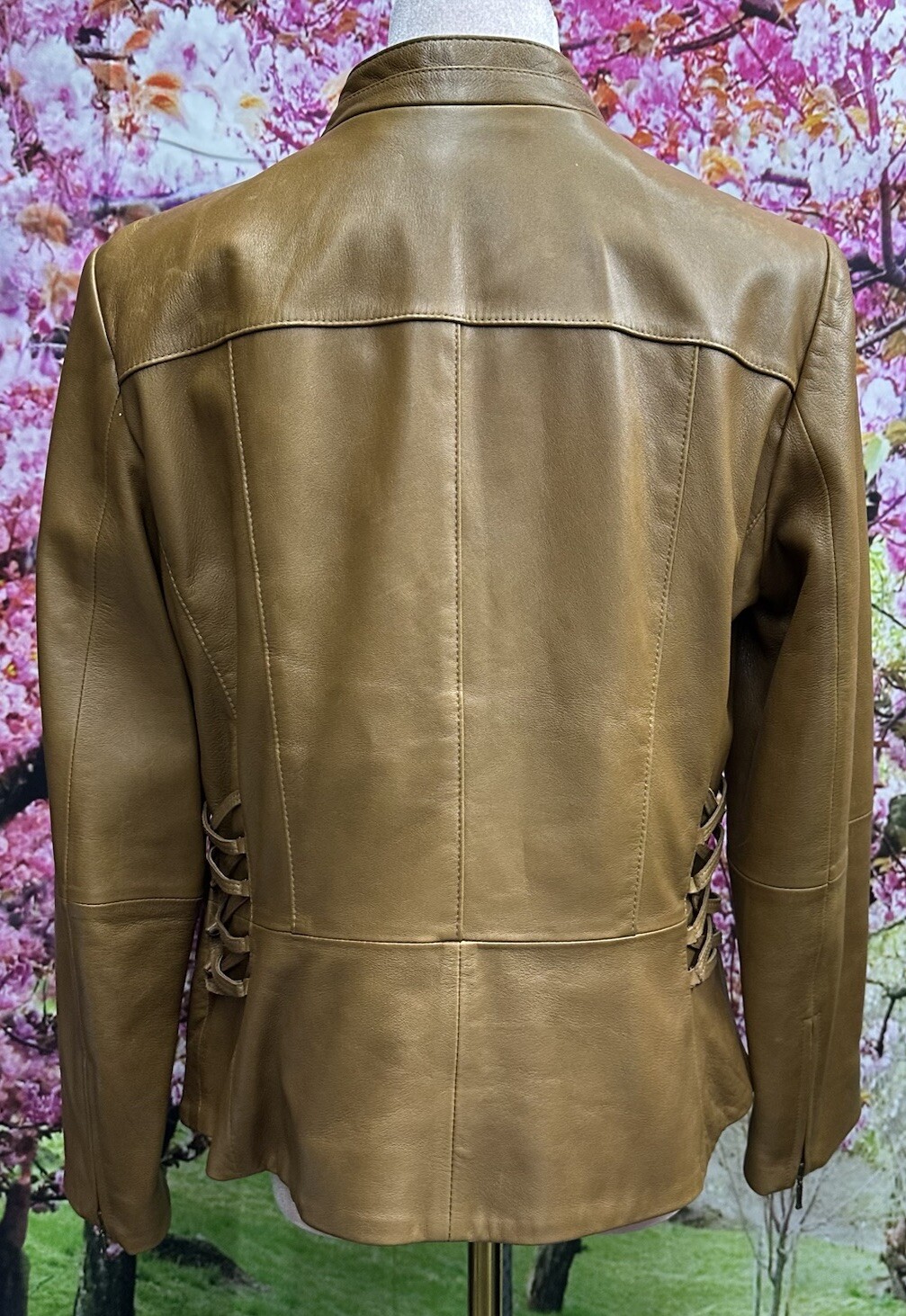Talbots jacket in a beautiful caramel brown condition . Crafted from soft 100% lambs leather, this short bomber jacket features a full zip closure and long sleeves. The laced side accents add a touch of rough style, making it perfect for both casual and business occasions. The jacket is a size 14P and has a regular fit. The lining material is made of polyester/viscose. It's a great choice for the fall, winter, and spring seasons, and can be worn for travel, parties, or workwear. Get ready to turn heads with this stylish jacket that's sure to become a staple in your wardrobe. Beautiful Preowned Condition! See all photos for specifics on style and measurements. So soft and super classy look! Message me if you have any questions! Thank you for shopping 🛍️ Stored Hung