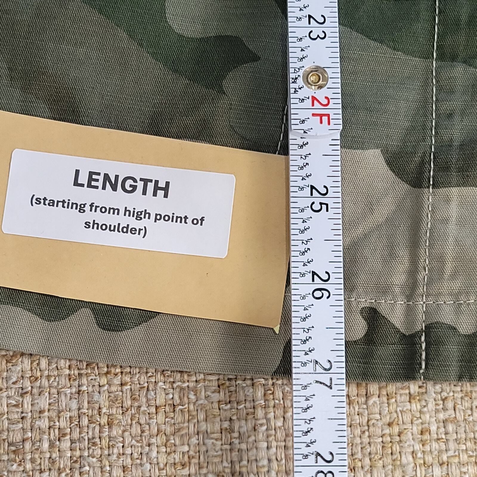 *Button Front *Tie Belt *Patch pockets *Hits slightly below hip Excellent pre-owned condition. No rips, stains, holes. Approximate measurements provided in photos. Machine washable. Let me know if you have any questions!