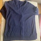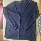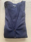 This is a Talbots cardigan sweater in size L, made of a navy blue cotton blend knit material. It features a V-neckline with button-front closure and long sleeves. The sweater is machine washable and has a solid pattern with a button accent detail. This versatile and comfortable sweater is a classic choice for women looking for a stylish layering piece in their wardrobe. Great condition!