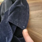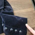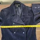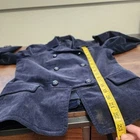 Elegant navy velvet blazer with button details. Similar to the FP piece, such a classy garment. Condition is pre-owned. Has some surface stains - one on the collar, two small stains on the left sleeve, and a stain near the hemline front left flank. Size label indicates petite sizing, please see measurements to ensure proper fit. Smoke Free Home. Measurements as Shown.