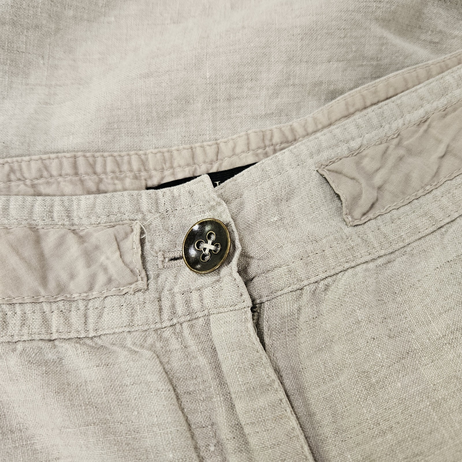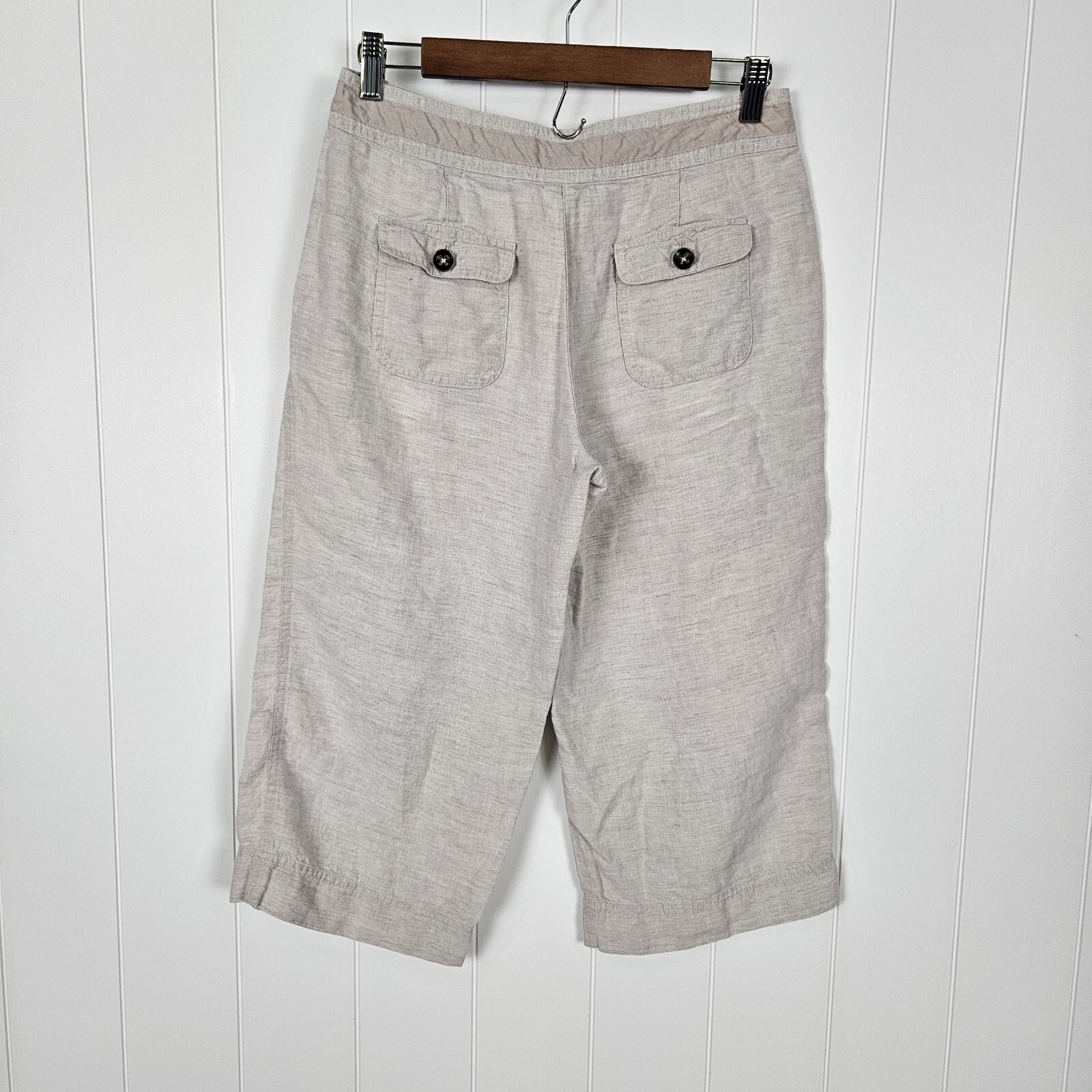 Talbots Wide Leg Capris Size 6P Beige/Khaki 100% Pure Irish Linen Good preowned condition with missing drawstring.