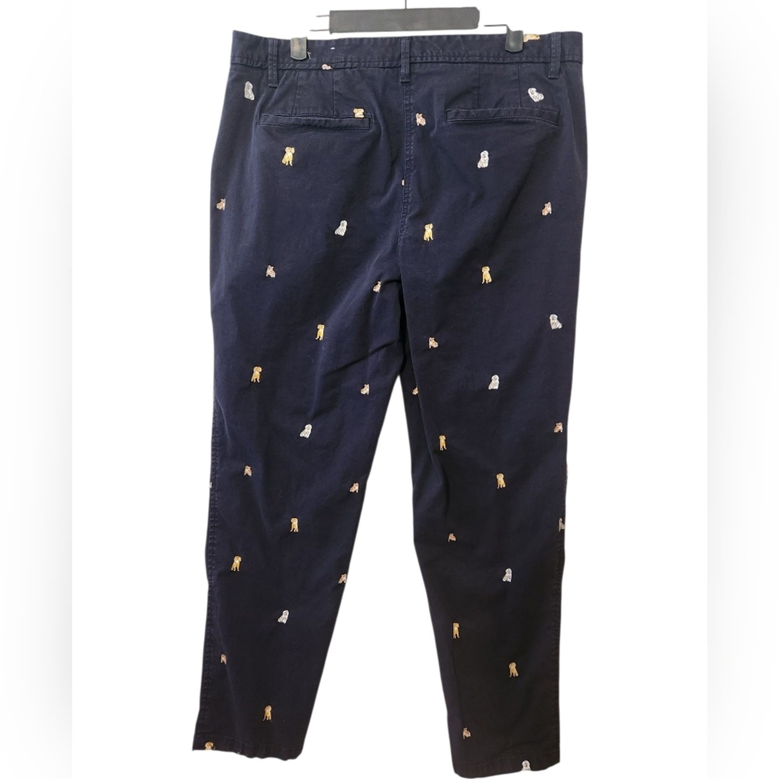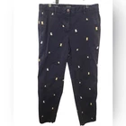 embroidered dog relaxed fit chino pants from talbots size 10 great condition! no stains, holes or pilling laying flat measurements in inches waist 18 rise 10 inseam 29 Relaxed chinos you’ll reach for again and again. Easy fit and a chic rolled hem. Just-right stretch for unbeatable comfort. In a smile-worthy print. Dress them up or down. Features Flat Front/Trouser Relaxed Leg Hits Below Waist Ankle Length Fly front with button closure Front Slash, Back welt pockets Imported