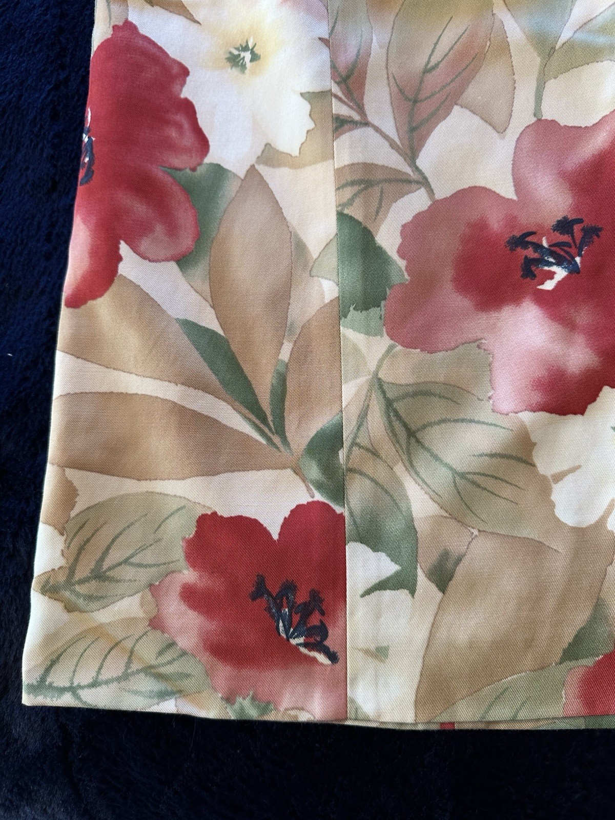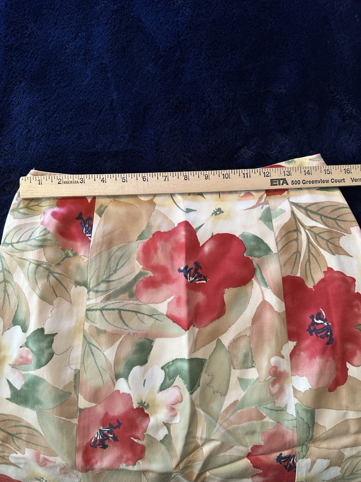 This Talbots skirt is a stylish and feminine addition to any wardrobe. The beige floral design gives it a tropical and garden-inspired feel, perfect for spring and summer occasions. Made from a silk blend, this midi-length A-line skirt features a zip closure and is lined for added comfort. Ideal for parties, cocktails, or casual outings, this skirt in size 8 is sure to elevate any outfit with its bohemian, retro, and preppy charm. Perfect for Barbie-inspired fashionistas who appreciate quality and style.