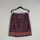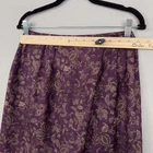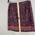 Talbots Skirt Womens 10 Purple Pure Silk Floral Print Border Boho Lined A Line Gently worn with no obvious stains, snags, or holes visible on the shell or lining. Fabric shows light overall wear from normal use, and the waist button is secure. Brand: Talbots Item: Womens A-line skirt with allover floral print and decorative border hem. Color: Purple base with tan floral pattern and multicolor border in orange, red, and navy. Size on tag: 10 Materials: Shell 100% silk; lining 100% polyester (per tag). Details: Side button closure at waistband, fully lined interior for comfort and coverage, lightweight drapey silk fabric, floral motif with boho-inspired contrast border along bottom hem. Made in China; RN 97627. 23066 Measurements: - Previous washings may change the sizing written on the tag. - Please refer to the photos above for all measurements. - Please compare our measurements to that of one of your favorite garments. - Please note, item measurements are approximate . All items are bagged and sealed after being photographed, then stored in a smoke free environment to ensure the item is exactly the same as when photographed. All items have been washed per eBay standards & policies. I carefully package and ship daily. Feel free to contact me with any questions.