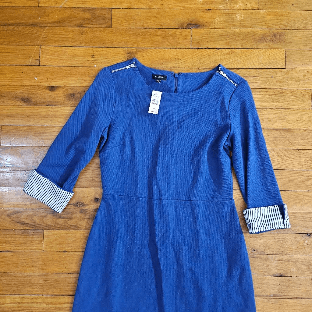 Talbots Texture Marled Sweater Dress Womens XS Blue Button Sheath Knit. If the clothes have a defect, it will be shown in the photos. New,