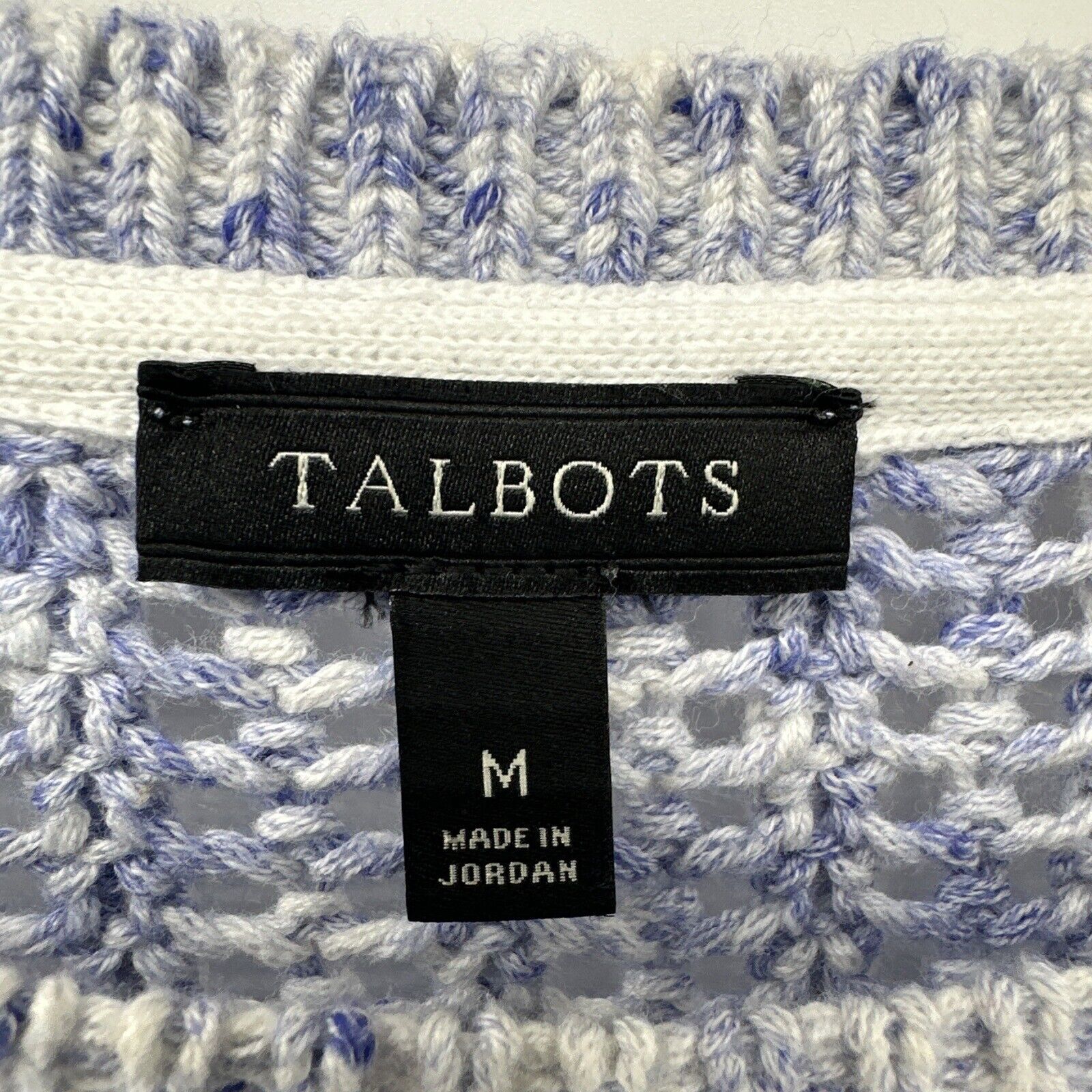 Talbots Women's Sweater Size Medium Open Knit Pullover Blue White Marled Long Sleeved Very good condition, see all pictures for views. Color is a purplish-blue and white. * Pit to pit: 21" * Shoulder to hem: 27" Ships out same day or next open postal day. Thank you for your purchase, we appreciate you!