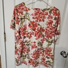 The Talbots Top is a women's plus size tropical floral V-neck T-shirt in red, perfect for adding a vibrant and colorful touch to your wardrobe. Made from a comfortable blend of cotton and modal, this short sleeve top features a flattering V-neckline and a cheerful floral pattern, ideal for a tropical or preppy flair. The 3X size ensures a comfortable and flattering fit for plus-sized women, while the multicolor design adds a playful and stylish touch to any outfit.
