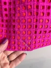This skirt is a fantastic find! The retro 80s style with fun cutouts makes it a unique piece for the office or casual wear. The high-waist fit is flattering, and the stretchy cotton fabric is super comfortable. It arrived in great pre-owned condition—no flaws at all! Shipping was lightning-fast, and the seller provided clear measurements. Perfect for work, church, or even a summer concert. Love the bold pink color—such a statement piece! Highly recommend!
