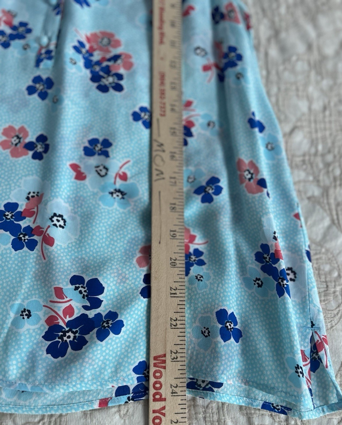 This Talbots Women's Top in small petite size features a beautiful blue floral viscose blouse with a V-necklin3. The lightweight and breathable fabric makes it perfect for all seasons, especially summer, fall, and spring. The sleeveless design add a stylish touch, while the pullover closure and machine washable care instructions ensure easy maintenance. Perfect for casual, business, or travel occasions, this top from Talbots is a classic and colorful addition to any woman's wardrobe.