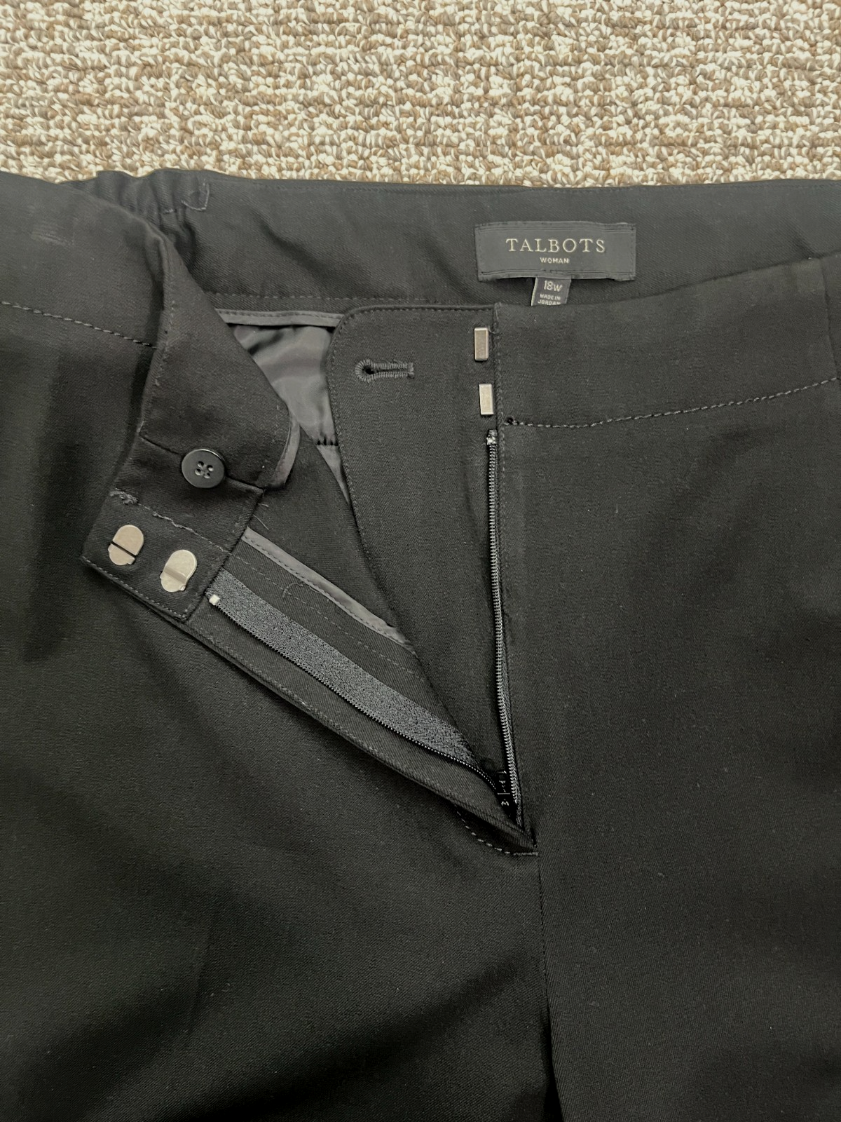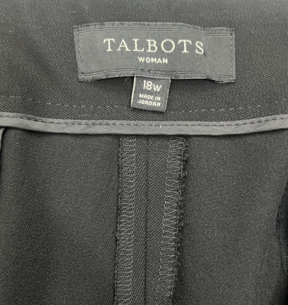 These Talbots Women's Black Trousers Pants in size 18W are versatile for both casual and formal occasions, featuring an elastic waist for comfort and stretch. The pants have a zip and hook & eye closure, straight leg style, and pockets for added functionality. Made from a polyester blend material, these dress pants are wrinkle resistant and easy to care for with machine washable instructions. Perfect for the modern woman looking for a stylish and practical wardrobe staple. - All of our measurements are approximate. Please compare the measurements we provide to an article of clothing you have that already fits. - All of our items are stored in a smoke/pet free area. NOTE: Products are always washed prior to shipment. Be sure to check photos before making any purchase.