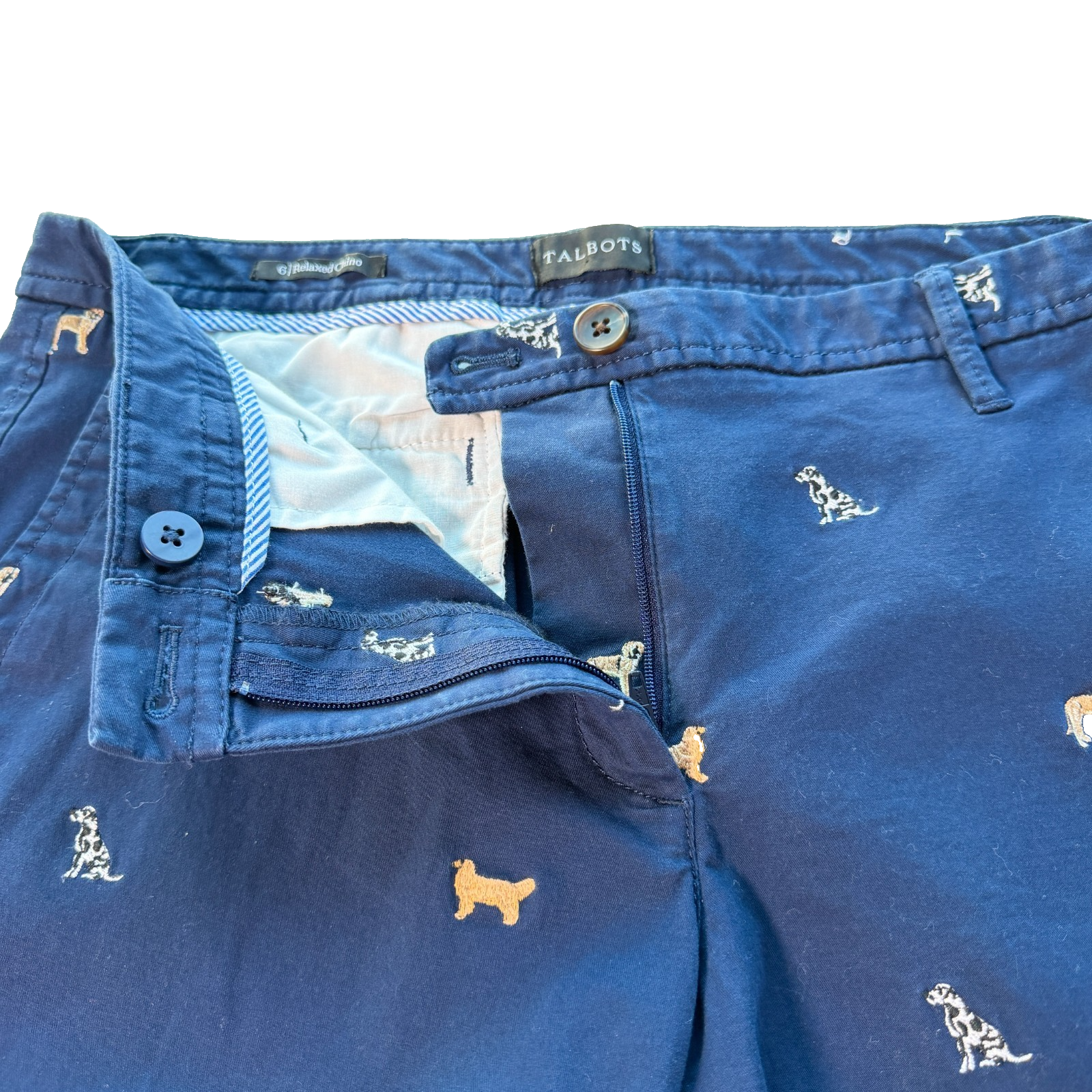Talbots Womens Embroidered Dog Show Relaxed Chinos Navy Size 6 Excellent pre-owned condition Measurements (approximate, laying flat) Waist: 16.5" Inseam: 28.5" Rise: 9" Style: Cottage, Preppy, Novelty, Dogs