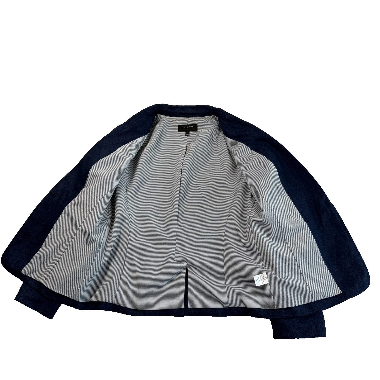 Talbots Womens Linen Blazer Navy Sz 8P Excellent pre-owned-condition Channel effortless Hamptons elegance with this timeless Talbots linen blazer. Designed in a classic navy with crisp white piping and a polished gold-tone button, this piece captures that refined, “old money” coastal aesthetic that never goes out of style. Measurements (approximate, laying flat) Bust (underarm to underarm): 19" Length: 24.5" Think: coastal mornings, boat shoes, oversized sunglasses, and a perfectly tailored blazer. Style: Coastal, Preppy, Hamptons Style, Quiet Luxury, Nautical, Minimalist, Old Money, Fisherman