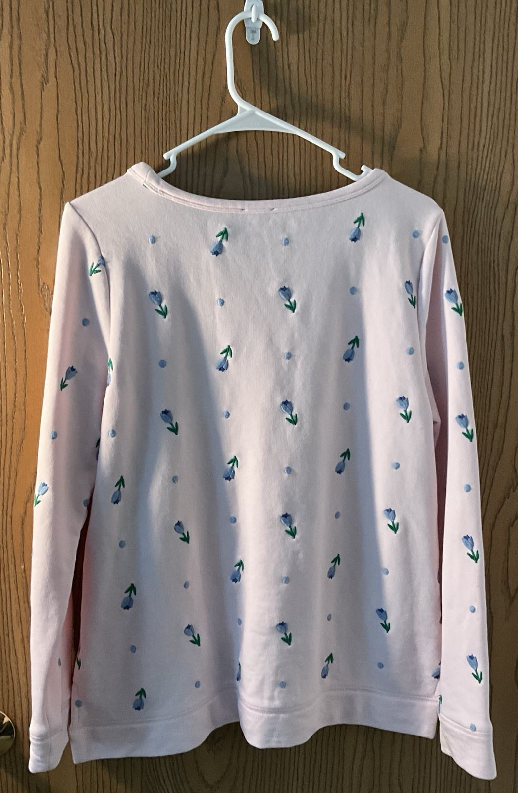 Talbots Women's Pink Long Sleeve Sweater with Flower Embroidery Size Medium NWOT