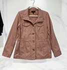 Talbots Safari Jacket Crafted from comfortable cotton twill, this versatile jacket features cinching at the waist for a flattering look. Plus, pockets where you want them. FEATURES Sleeve Length: Long Neckline: Stand Collar Closure: Button Front Pockets: Welt Imported Gorgeous Pink with Very light Stripe Damask Size Small See Pics For Measurements Make sure to Compare Measurements to items you already own & love to ensure a Good Fit before placing an order & for best buying experience ! We Ship out all purchases within 1 business day of payment. Automatic $10 flat Rate Combined Shipping on all items added to cart & paid for together in 1 order. “Will Not Apply To Best Offers Sent To Us” 30 day Free Returns just in case you don’t Love it ! Happy Shopping 😊