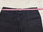 Elevate your travel or casual look with these Talbots linen pants in a muted black color. These pants feature a wide-leg capri style with a 24-inch inseam and square pockets for added convenience. The 100% linen fabric makes them comfortable to wear in any season and easy to care for with machine washable garment care. Perfect for any occasion, these pants come in a women's size 12 with a mid-rise waist of 33 inches and a regular fit. The minimalist, coastal, and classic theme of these pants make them a versatile addition to your wardrobe. Made in Egypt, these pants are a must-have for any fashion-forward woman. Please zoom in on photos for style and condition.